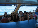 | マラマラ島(無人島)へ行く途中のボートの中で。。。最初は知らない人同士どうなるかと心配しましたが、皆さん心を開かれてコミュニケーションを図られていました。 |